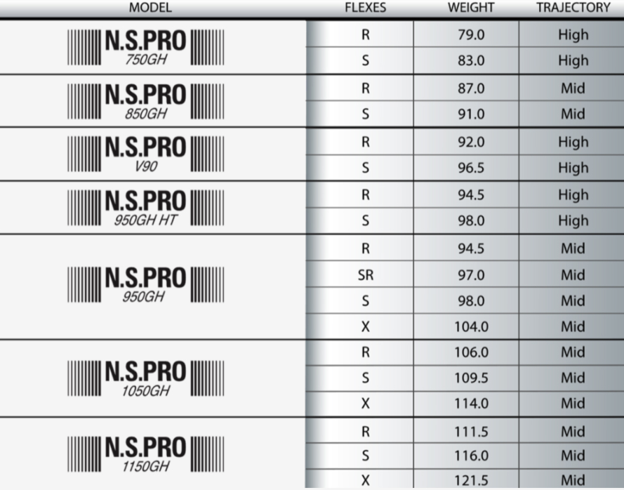 예컨대, NS Pro 950GH은 스틸 샤프트의 대표작으로 손꼽히고 있고, NS Pro 950 NEO는 최신 설계가 가미된 버전입니다.